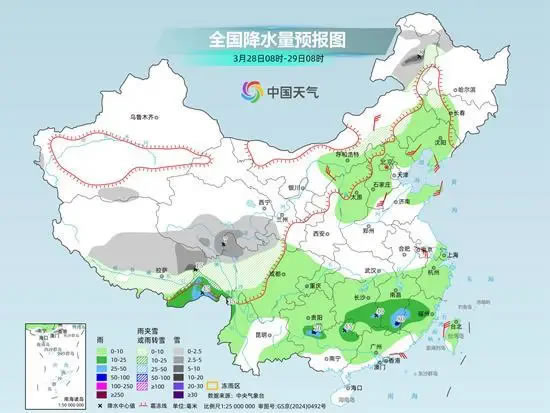 具體來看,中央氣象臺預(yù)計,今天,新疆南疆盆地東部、西藏中南部、青海北部、甘肅河西和西南部、川西高原北部、內(nèi)蒙古東北部等地部分地區(qū)有小到中雪或雨夾雪,其中,西藏東南部、青海北部、甘肅河西等地部分地區(qū)大雪,局地暴雪;江南中東部、貴州東南部、廣西北部等地部分地區(qū)有中到大雨,其中,江西東南部、福建西部等地部分地區(qū)有暴雨。