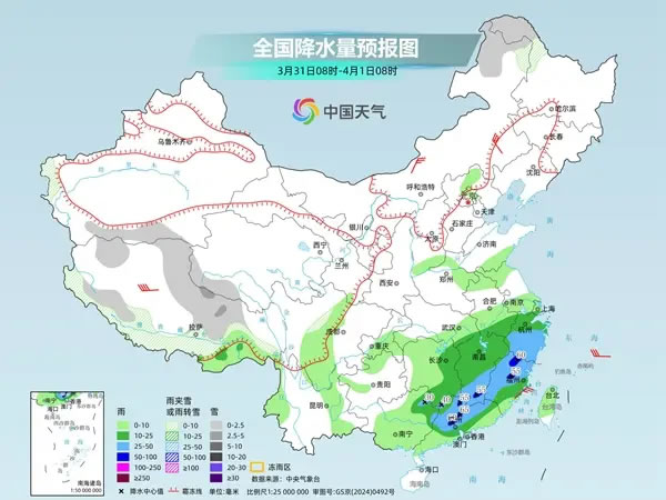 近期,南方多地降雨連連,今天(3月31日)大范圍降雨和強對流天氣仍將持續(xù),廣東、福建、浙江等地需防范暴雨,明天南方大部將進入雨水間歇期,但后天新一輪降水過程又將來襲。在頻繁降水和冷空氣影響下,全國大部氣溫起伏明顯,而華南地區(qū)則維持炎熱的天氣格局。