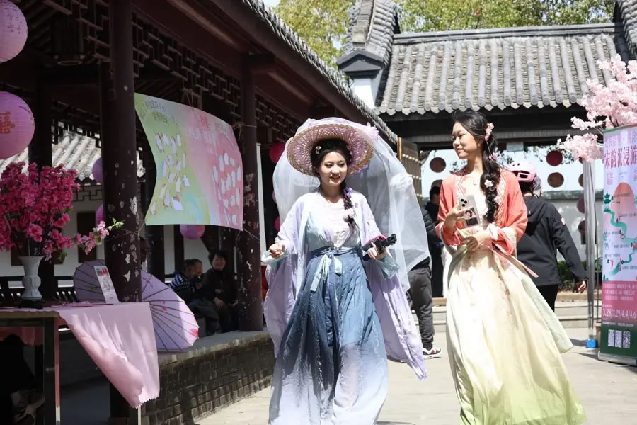 市民穿著漢服參加桃花節(jié)。李茂君 攝
