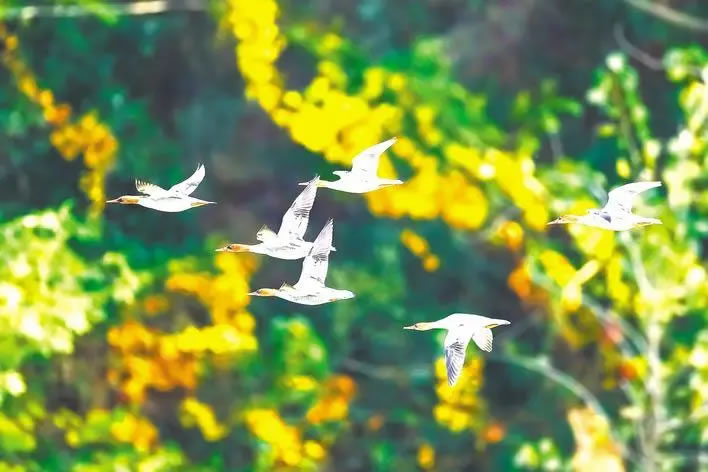 國家一級保護野生動物中華秋沙鴨已連續(xù)12年來遠安越冬。 (遠安沮河國家濕地公園管理處供圖)