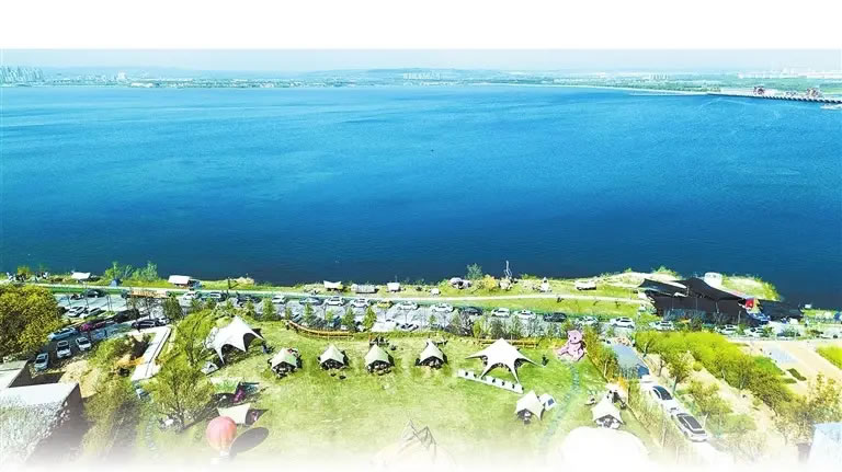 4月5日,游客在洛陽市孟津區(qū)白鶴鎮(zhèn)境內的黃河生態(tài)廊道生態(tài)觀景平臺和觀光驛站露營休閑。黃政偉 攝