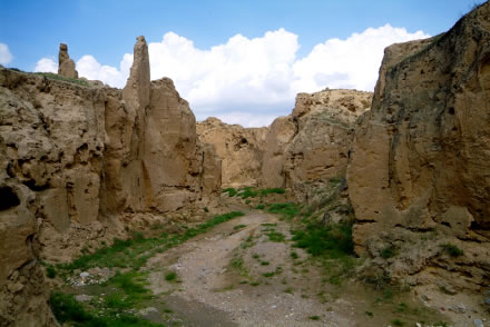 從水洞溝到紅山堡之間,有長約4公里的峽谷,本是大自然的“杰作”,但明代時,這又成了長城“深溝高壘”防御體系的重要組成部分。峽谷兩岸經(jīng)常年的風雨剝蝕,溝壑縱橫,深厚的黃土經(jīng)長期的雨水沖刷,土柱突兀壁立,造型奇特,形成了“土林”!巴亮帧庇纸(jīng)大自然鬼斧神工雕琢般地形成千奇百怪的形像。有的像僧人登高遠眺,似在期待來者;有的宛如一對戀人,相親相依;有的如夫妻相敬,雙方對拜,琳琳總總,各具形態(tài),給人以無盡的遐想。在峽谷的兩邊的崖壁上有明代將士修建的藏兵洞,它充分顯示了古代人民的軍事智慧和聰明才智。