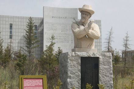 退役了,豐碑立在純凈的草原深處。當你從西寧向北驅(qū)車100公里,進入當年的軍事神秘禁區(qū)金銀灘草原時,第一簾映入視野的,便是“兩彈”研制成功的大型花崗巖紀念碑。整個碑高16.15米,象征著1964年10月16日15時成功爆炸第一顆原子彈,碑端為不銹鋼圓球,昭示著中國人民終于圓了原子彈和氫彈合二為一的夢。碑文鐫刻著該基地在研制“兩彈”中所走過的艱難歷程和中國的核立場,總共600個字。紀念碑左右兩邊分別是原子彈和氫彈爆炸時的煙云浮雕,以及爆炸成功的時間,正面為張愛萍將軍題寫的碑名“中國第一個核武器研制基地”。