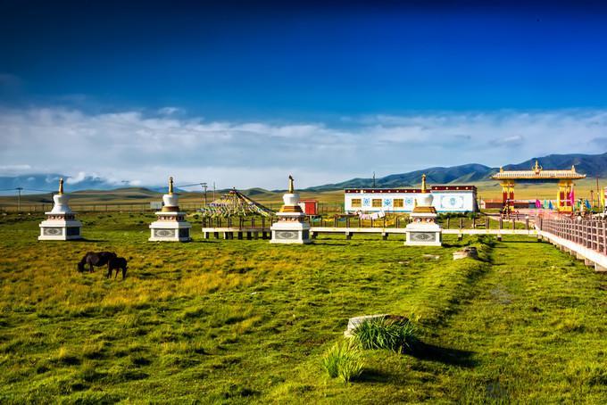 金銀灘的黃金季節(jié)是7、8、9三個月,鮮花盛開,百鳥飛翔,尤其是百靈鳥兒的歌聲,動聽迷人。這里是一片碧草如茵的大草原。浮云般的羊群,棕黑相間的牦牛,星星點點地徜徉在青草和野花叢中。穿著藏服的藏民,騎著駿馬悠然地在草原上緩緩而來。遠處,山巒起伏,偶有雄鷹飛過的身影,蓮花般的蒙古包散落在白云深處。金銀灘草原牧草肥美、牛羊肥壯,人們以金銀遍地來形容這片美麗而富饒的土地,故得名“金銀灘”。