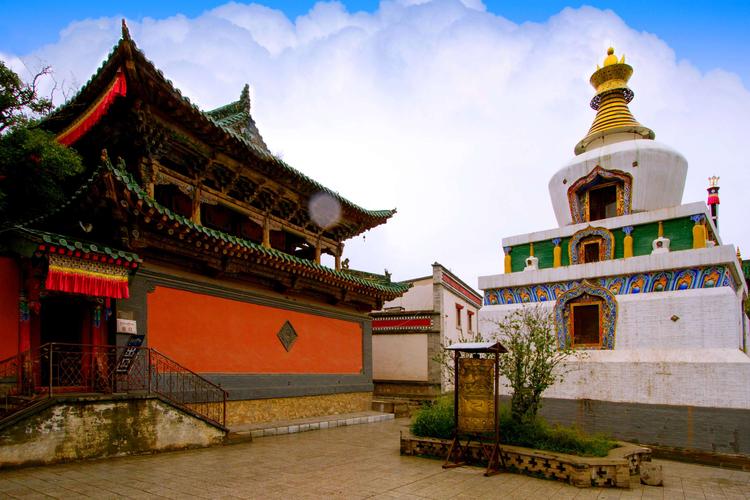 由經(jīng)堂、華門、牌坊3座殿堂組成,為漢藏合璧式建筑,是塔爾寺總法臺的居住處,達賴、班禪曾駐蹕于此。居巴扎倉(密宗學院)系藏式平頂建筑。曼巴扎倉、丁科扎倉屬漢藏結合建筑。寶塔數(shù)十座,其中并列于寺前的8座如意寶塔,方座,瓶形塔身,尖頂,根據(jù)釋迦牟尼一生重要經(jīng)歷和傳說建成。 最后終于有了塔爾寺。