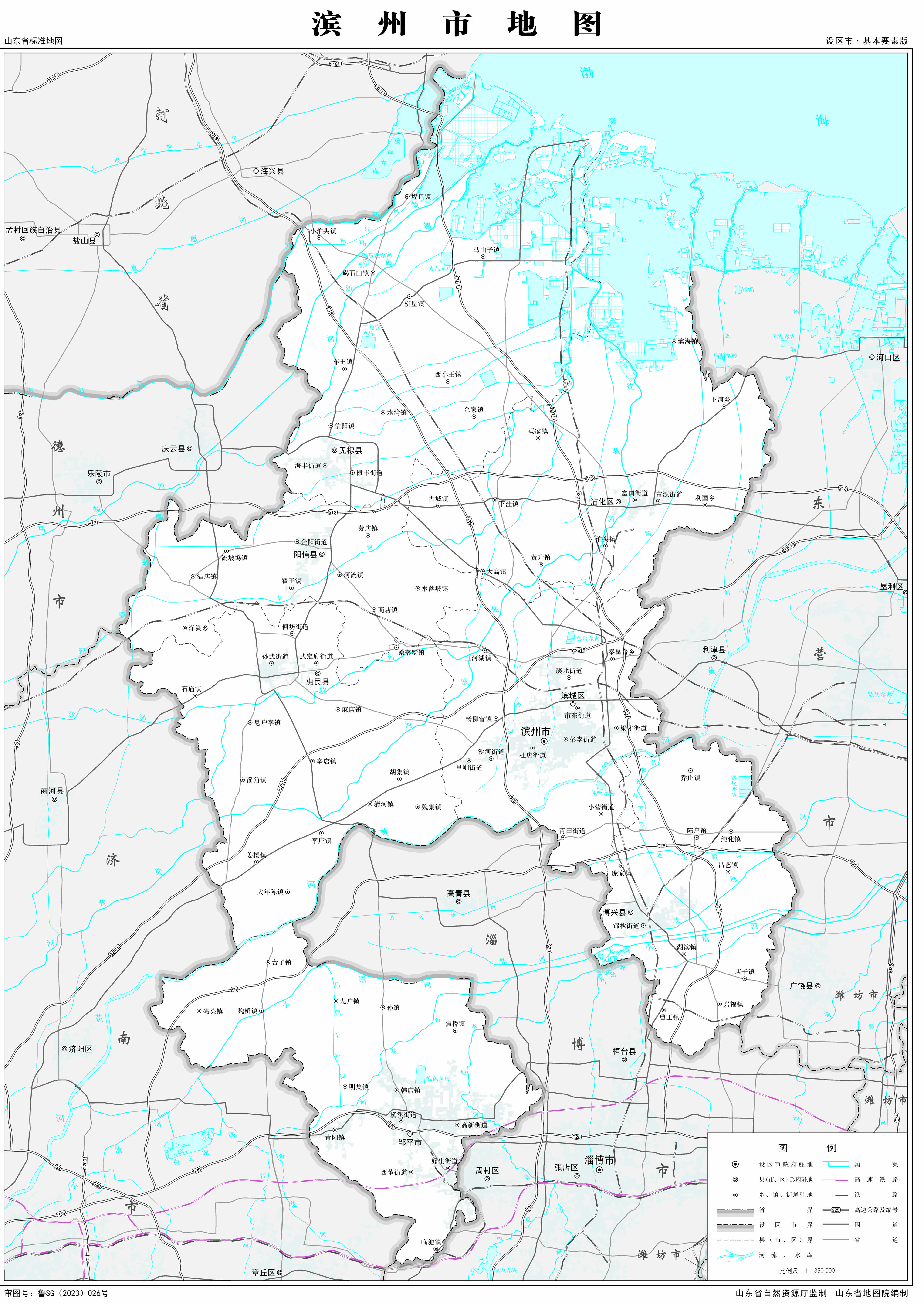 濱州市轄轄2個區(qū)、4個縣,代管1個縣級市:
