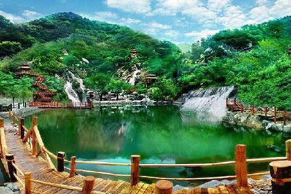 九如山以自然山水而聞名,山依水勢,水奪天工,托起一片世外奧區(qū)。遠遠望去,可見泉涌成溪,溪流成瀑,瀑落成潭,潭潭相通,匯集成八潭明鏡。是所謂:峽谷有流,聚在平湖,山泉涓滴,匯成高潭。層層疊嶂,層層儲水,一年四季,不管天公旱澇,無論氣候寒暑,九如山的潭水總是那樣清瑩玉潔,滋潤山體。游人可以在潭中泛舟,可以在池邊戲水,享受天開畫境,觸摸水景幻變,放懷吸取大自然的無窮靈感。