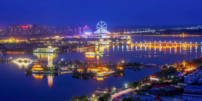 國家4A級旅游區(qū)、山東省重點服務業(yè)園區(qū)、山東省生態(tài)漁業(yè)示范園、國家垂釣基地,也是“江北水城·運河古都——生態(tài)聊城”城市品牌的核心區(qū)域。位于聊城市中心城區(qū),由10個湖區(qū)和20塊水面組成,總面積6.3平方千米,湖岸線長達16千米,有“南有西子,北有東昌”之美譽,是中國江北地區(qū)罕見的大型城內湖泊。東昌湖湖始于北宋熙寧三年(1070年),水深平均達3米,最深處5米。水質清澈,景色宜人,適宜水上游樂項目的開發(fā)與建設。