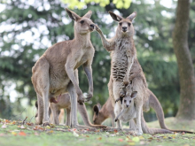 袋鼠是澳大利亞的國獸,有著獨(dú)特的育兒方式,袋鼠習(xí)慣用后肢跳躍前進(jìn),時(shí)速可達(dá)60公里。袋鼠坡草坪上的灰大袋鼠、赤大袋鼠組群生活,它們性格溫順。