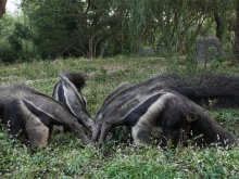 大食蟻獸展區(qū)位于鱷魚島的北面緊鄰飛熊山莊,大食蟻獸是生活在南美洲的一種奇特動物,它們的長相非常獨(dú)特,有著尖尖的腦袋和一把“大掃帚”尾巴。大食蟻獸室內(nèi)展廳設(shè)計(jì)有地暖和空調(diào),一到冬天就會開啟,將室內(nèi)溫度維持在15攝氏度左右,為保證空氣流通,白天亦會開窗通風(fēng)。其次,在大食蟻獸睡覺區(qū)域鋪墊了木板,能減少熱量流失,它們很喜歡在木板上盤成圈睡覺。冬天的時(shí)候,大食蟻獸的食物會提前預(yù)熱下,例如牛奶提前泡暖,酸奶放置到常溫再使用。