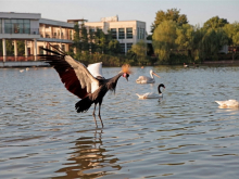鶴類濕地沿天鵝湖而建,四面環(huán)水,有著仿自然的生態(tài)環(huán)境。這里有丹頂鶴、白枕鶴、白鸛、蓑羽鶴、灰鶴、冠鶴等。每日黃昏時(shí)間,群鶴共舞共鳴,鶴類濕地每天都會有動物科普講解以及動物喂食互動節(jié)目。