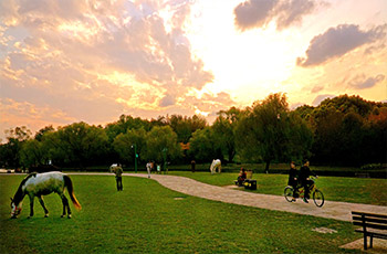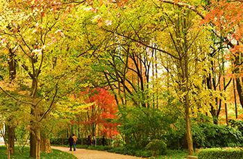 上海共青國家森林公園是以森林為主要景觀的特色公園,共種植200余種樹木,總數(shù)達(dá)30多萬株。公園分為南北兩園,北園占地1631畝稱為共青森林公園,南園占地239.6畝稱為萬竹園。南北園風(fēng)格各異,北園著重森林景色,有丘陵湖泊草地,南園則小橋流水一派南國風(fēng)光。除觀景之外,游人也可在園內(nèi)騎馬,燒烤和垂釣。