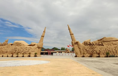 勝利大道全面反映抗戰(zhàn)時期八路軍戰(zhàn)士英勇抗敵,與日軍斗智斗勇,最終取得勝利的畫面。畫面包括:地道戰(zhàn)、地雷戰(zhàn)、小兵張嘎、雞毛信、鐵道游擊隊、雁翎隊、狼牙山五壯士、白求恩、聶耳(義勇軍進(jìn)行曲)、黨的兒女、歡慶勝利、支援前線、雙槍李向陽、百團(tuán)大戰(zhàn)、送子參軍、消息樹、紅燈記等21 組雕塑。