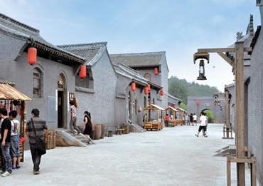 八路村村落建筑總體鳥瞰呈“路”字型,這里高度濃縮八路軍的戰(zhàn)斗精神和光輝業(yè)績,是一個繼承和發(fā)揚八路軍文化,進(jìn)行愛國主義教育及精神文明教育的生動課堂,突出八路軍的軍旅生活、文化生活,文藝創(chuàng)作、抗戰(zhàn)宣傳、文化教育,軍工生產(chǎn)、政權(quán)建設(shè)、新聞出版和商貿(mào)服務(wù)等內(nèi)容。