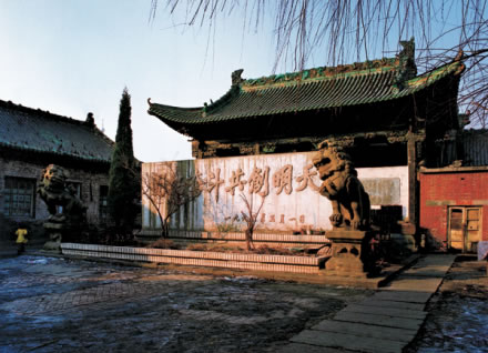 懷覃會(huì)館,位于山西晉城市城區(qū)東巷街,是晉城市重點(diǎn)文物保護(hù)單位,是彰德、衛(wèi)輝、懷慶3府在澤州府的行業(yè)會(huì)館。據(jù)考證,拜殿建于清乾隆五十八年 (1793年),側(cè)殿建于清嘉慶七年(1802年)。今存建筑多為明代遺物。由大小兩個(gè)院落組成。占地2000余平方米。主要建筑有照壁、東西戟門、舞臺(tái)、鐘鼓樓、大殿、拜亭、耳殿、廊廡等。院內(nèi)有一對(duì)高2米多的石雕雄獅,氣度非凡。