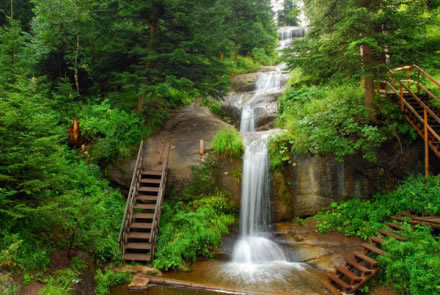 九重瀑布位于寧武縣東寨鎮(zhèn)大溝村腳下,在情人谷景點與馬侖草原之間,距東寨鎮(zhèn)約12公里。因其地勢高峻,天藍(lán)氣清,有似入天宇之感,故名“九重瀑布”。瀑布從森林密布的山谷石崖上直瀉而下,全場300余米,落差高達(dá)55米,流量120m/s,負(fù)氧離子28000個/cm,暑期最高氣溫19°C。