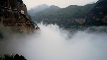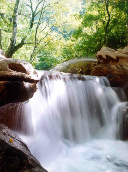8、二十公里的水濤溝、蒼巖、曲徑、奇樹、怪石、山花、野草點(diǎn)綴其間,北魏酈道元《水經(jīng)注》所說(shuō)的綿山 石桐水千回百轉(zhuǎn) ,湍湍流過(guò),蒼鷹低回空谷鳥鳴,組成了一幅奇特的山水畫卷。其中的五龍飛瀑落差80余米,游人可從瀑下通過(guò);水簾洞府瀑流從洞前飛流直下,洞內(nèi)可容納三四十人。這樣的風(fēng)光,在北方地區(qū)實(shí)屬罕見。