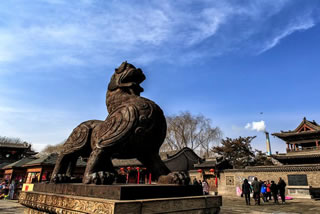 城隍廟是國務院重點文物保護單位,也是國內(nèi)保存最完整的城隍廟之一。占地面積6000平方米,始建于元至正二十二年(公元1362年),廟內(nèi)主殿建筑結構精巧細致。主殿前 有玄鑒一座,高達25米,頗為壯觀,1999年世界歷史文化遺址保護基金會公布為全球最精美的古建筑之一,城隍廟是古代宗教文化中普遍崇祀的重要神之一,是護城佑民、主掌茗 籍之神。是古代“人神共治”思想的明確反映 。城隍廟前,有兩尊貔貅(pi xiu)威武地橫在門前的廣場上。這種據(jù)說只有嘴沒有屁眼的獸喻意“只進不出”,是發(fā)財?shù)娜皤F。在陽光下.鑄鐵的貔貅昂首挺胸,威風凜凜,像一對忠誠的衛(wèi)士,日夜鎮(zhèn)守在古城。