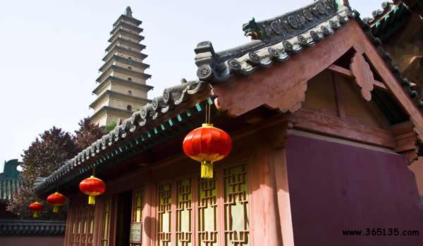 普救寺位于永濟市蒲州鎮(zhèn)的土崗上,始建于唐武則天時期,原名永清院,是一座佛教十方院。元代王實甫《崔鶯鶯待月西廂記》中說的“紅娘月下牽紅線,張生巧會崔鶯鶯”的愛情故事就發(fā)生在普救寺內。歷經(jīng)歲月滄桑,寺內殿閣僧舍均已毀坍湮沒,唯有13層、高37米的舍利磚塔(俗稱鶯鶯塔)依然屹立于土崗之上。20世紀80年代中期,依據(jù)唐代佛教寺院的布局和西廂記故事的格局修復了普救寺,F(xiàn)在巍峨高大的主殿、小巧玲瓏的西廂書齋、方整寬敞的塔院、崔相國夫人和鶯鶯小姐所在的佛居別墅等建筑都已落成,它們依山而筑,錯落有致。