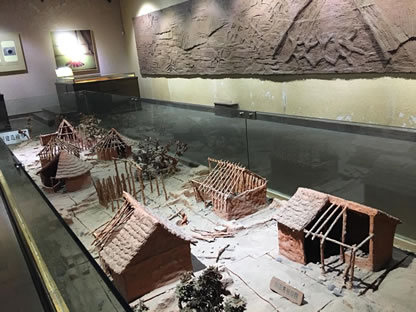 出土文物陳列由第一展室和第二展室組成,兩個(gè)陳列室陳列的是從遺址中發(fā)掘出來的生產(chǎn)工具和生活用品。