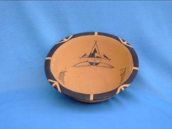 繪畫圖案古樸、簡(jiǎn)練,可分三大類:一類為象生性圖案,如張口作吞食狀的魚、悠閑的鹿、搜索食物的蛙等動(dòng)物紋,還有植物紋。這些象生圖案同史前人類的生活息息相關(guān),形態(tài)生動(dòng)的動(dòng)植物紋樣是農(nóng)耕和漁獵生活的反映。第二類為幾何圖案,有三角形,方格紋、編織紋等,這類圖案多在缽、罐、盆、壺類器皿外璧上部,許多缽類器口緣外側(cè)繪黑色寬帶紋,部分大口淺腹器皿的彩陶?qǐng)D案多繪在內(nèi)壁上,小口器的圖案則繪在口唇和肩腹部,這些部位多是容易看得見的地方,多數(shù)圖案清晰,筆畫疏朗,這些幾何圖案中,三角紋是由魚紋圖案變化而來,波折紋則是山或水的寫意。