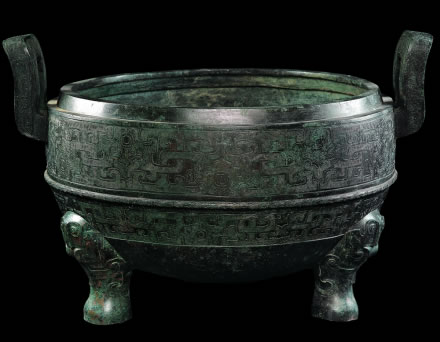 此展品為秦代的青銅器,通高61.00厘米,口徑65.50—71.00厘米,腹深34.00厘米,重212千克,出土于秦始皇帝陵K9901陪葬坑出土。是出土于百戲俑坑的一件青銅鼎,形體碩大,所以稱它秦陵大鼎。此鼎造型穩(wěn)重,上有繁復(fù)精美的紋飾,因與百戲俑同出于一個(gè)遺址坑,有學(xué)者認(rèn)為應(yīng)該是舉鼎時(shí)的一件道具,也有人認(rèn)為是禮器因?yàn)榍啬⿷?zhàn)亂而被掩埋。