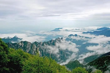 太白山千峰競(jìng)秀,萬(wàn)壑藏云。在海拔2000米以上的地方,可看到極其壯觀的云海,以平安寺為最。平安寺地處海拔2700米的山梁上,周?chē)悍迓柫⒐爸牛瑒?shì)若圍屏,山峰間溝壑寬闊,深邃莫測(cè)。向南展眸,拔仙臺(tái)、跑馬梁、鰲山相連如駝峰顯現(xiàn)。向西北遠(yuǎn)眺,桃川河帶狀蛇迥,隱隱可見(jiàn)。站在平安寺,但見(jiàn)云層如海濤洶涌,變幻多端。時(shí)而“涌濤掀浪”,不可遏止,時(shí)而“風(fēng)平浪靜”,霧散云匿,時(shí)而濃云密霧鋪天蓋地,時(shí)而白云輕如鮫綃。朝、夕晴朗之時(shí),云海霞光映金,景色煥然一新。置身云海之中,使人有進(jìn)入神話(huà)傳說(shuō)的仙境之感。