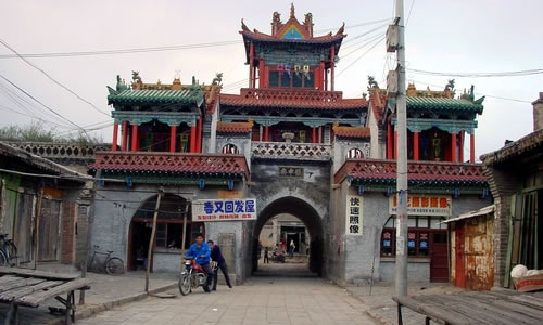 高家堡古城:唐屬豐州地,舊稱飛鴉川、彌川。城池始建于明正統(tǒng)四年(1439),原隸屬佳州,清末劃歸神木。該城位于神木縣城西南海50公里的禿尾河?xùn)|岸,西北距明長城約5公里,原為夯筑土城,萬歷三十六年(1608)用磚包砌,清乾隆十五年(1750)、三十三年(1768)兩度重修,后多次修葺。該城平面呈長方形、東南墻均長311米,南北墻均431米,殘高6.5—9.1米,基寬7.52米。城墻上部建有1米高的女墻,間有垛口、嘹望洞。北城頭修有三官樓,東南角建有魁星樓,F(xiàn)除魁性樓、女墻、垛口、嘹望洞被壞外,其余的均保存完好。另東、南、西墻各辟一卷門,并筑有甕城,現(xiàn)城門的敵樓、嘹望臺(tái)和南門已破壞。城內(nèi)原有的中興樓(1988年被縣人民政府公布為重點(diǎn)文物保護(hù)單位)、城隍廟、財(cái)神廟、五道廟、祖師廟、西門寺、貞節(jié)牌坊等古建筑,現(xiàn)僅存中興樓和財(cái)神廟,城內(nèi)街道以中興樓為軸心,向東西輻射為東西街,向陽北南北輻射為南街和北巷。明、清到民國初,南街最為繁華,至今大部分鋪面保存完好,東、西、南街各通有巷道。居民建筑群為典型的北方構(gòu)筑風(fēng)格。既有四合院,如北巷的李家大院;又有前庭大院,如東街的盧家大院、西街的韓家大院;還有樓院,如十字巷的李家樓院,同心巷的劉家樓院等。高家堡古城是神木縣乃至整個(gè)陜北較為完整的一座城堡,且有獨(dú)具特色的保護(hù)價(jià)值,神木縣人民政府已擬定將該城列為重點(diǎn)文物保護(hù)單位。