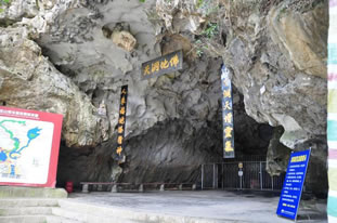佛爺洞位于李白故里——四川省綿陽江油市城西北十四公里處,是神密的川西北最大的喀斯特溶洞。此處上接匡山(又名戴天山);下連李白讀書臺;東臨觀霧、團嶺;西依瑩華、乾元,它是通往九寨風景區(qū)的必經之地。洞四周山環(huán)水繞,古木蒼翠,風光奇絕。民國二十三年,人們在通天清河邊發(fā)現了一蹲三米多高的石刻如來佛像,故此洞名曰佛爺洞。