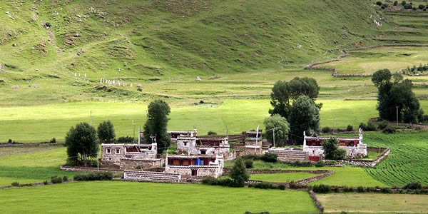 噶達(dá)強(qiáng)巴林惠遠(yuǎn)寺;葸h(yuǎn)寺,位于道孚縣協(xié)德鄉(xiāng)境內(nèi)、S303線八美至丹巴方向8公里處的山間小盆地內(nèi),海拔3600米;葸h(yuǎn)寺的所在地實(shí)為風(fēng)水寶地,盆周的山形渾圓,多有柔和的皺折,猶如盛開的蓮花,盆地內(nèi)溪水叮咚,遠(yuǎn)有森林牧場(chǎng),近有村舍農(nóng)田,地勢(shì)平坦,風(fēng)景秀麗。解放前,惠遠(yuǎn)寺在藏區(qū)各教派大小喇嘛寺中,是唯一一座由國(guó)家專款建造、維修、供奉香火的黃教寺廟。它曾作為七世達(dá)賴格桑嘉措的行宮,享有佛教“九龍九獅”的崇高尊號(hào)而名揚(yáng)康藏,享譽(yù)中外。