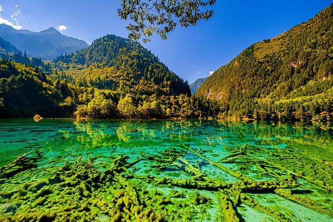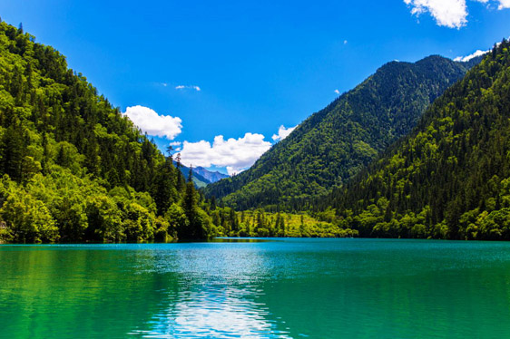 炎炎夏日,似火驕陽(yáng)與粘濕汗水籠罩了整個(gè)大地,而此時(shí)的九寨溝卻截然不同。她掩映在整片整片蒼翠欲滴的濃陰之中,茂盛的林木守衛(wèi)著海子,歡快的流水梳理著樹枝與水草,一切都透著清爽。