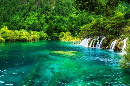 樹正群海海拔2187—2280米。其地形是在河谷迭加泥石流堆積物基礎(chǔ)上,再經(jīng)鈣華沉積,形成大小19個(gè)湖泊,順著溝谷層層迭迭。該處森林、湖泊、小瀑布相錯(cuò)相連,呈現(xiàn)“樹在水中生,水在林間流,人在畫中游”的奇特景觀。