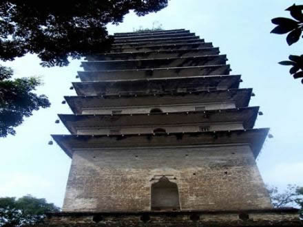靈寶塔又名凌云塔,因其聳立在凌云寺后的靈寶峰巔,故以山峰命名。塔建于唐代,塔形呈密檐式四方錐體,磚砌而成,坐東向西,高38米,共十三級。塔體中空,內確 ”石階沿塔軸盤旋至頂。塔頂為四角攢尖式。靈寶塔的結構和風格與西安小雁塔相似。