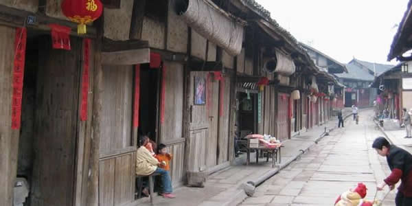 歷史文化 堯壩古鎮(zhèn)歷史悠久,是合江最早的六大古寨和八大古鎮(zhèn)之一。北宋元豐(1078-1085)年間,合江設(shè)置二鄉(xiāng)六寨,堯壩寨為軍事要寨,居六寨之首;南宋嘉定(1208-1224)年間,合江劃分一鄉(xiāng)七里二十都、六寨十九集市,堯壩居白馬里第13都,稱為堯壩集市;至清雍正七年,編為合江西鄉(xiāng)堯壩支;光緒年間(1906)屬西四區(qū)堯壩鄉(xiāng),解放后改為堯壩鎮(zhèn)。堯壩人杰地靈,名人薈萃。在這鐘靈毓秀的土地上,孕育了清嘉慶年間武進(jìn)士李躍龍、反清斗士任大容、近代革命斗士梁自銘、著名導(dǎo)演凌子風(fēng)、美學(xué)奠基人王朝聞、著名作家李子英、打工文學(xué)扛鼎者周崇賢、著名美術(shù)設(shè)計師楊洪烈等一批優(yōu)秀名人。 堯壩古鎮(zhèn)依山傍水,鎮(zhèn)周青山翠疊,河岸綠竹搖曳。鎮(zhèn)內(nèi)古街保留完好,建筑完整,有小青瓦房2000余間。上街房依山而建,高低起伏、錯落有致,下街房寧靜平和,瓦脊連成一線,形成有節(jié)奏、有韻律的民居群落。鎮(zhèn)內(nèi)茶館、酒肆、打鐵鋪、飯館、旅店、打鐵鋪一應(yīng)俱全。堯壩鎮(zhèn)古民居以其宏大的規(guī)模和完好的保護程度,被清華大學(xué)古建筑著名教授陳志華稱之為“川南古民居的活化石”。古鎮(zhèn)標(biāo)志性建筑是大鴻米店,為清嘉慶年間武進(jìn)士李躍龍所建,著名導(dǎo)演黃健中在此執(zhí)導(dǎo)拍攝了影片《大鴻米店》。 堯壩鎮(zhèn)匯集了川、黔兩省的濃厚歷史文化和古風(fēng)民俗,是享譽川黔的文化名鎮(zhèn)、影視基地、佛教圣地。鎮(zhèn)上先后拍攝了《狂》、《大鴻米店》、《山風(fēng)》、《瀘州起義》、《英雄無界》、《功夫驕子》等十多部影片。 堯壩古鎮(zhèn)的景點主要有古街道、古民居群、進(jìn)士牌坊、東岳廟、大鴻米店、娘親古榕、九龍聚寶山、興順號、添壽堂、神仙洞、茶鹽古道豆花館、龍眼井、喻嘴河、渣口石水庫等。古鎮(zhèn)還有特色油紙傘、土布、竹編等工藝品出售。鎮(zhèn)上還有黃粑、豬兒粑、水豆花、蕨苔、天堂筍、竹筒飯等特色小吃。 名勝古跡 進(jìn)士牌坊座落于古街最南端,為堯壩古鎮(zhèn)清代建筑物。清嘉慶十五年(1810年),皇帝嘉獎庚午科武進(jìn)士李躍龍功績而御立。牌坊雕刻精美,匠心獨運,坐北向南,石結(jié)構(gòu),三重檐四柱三間,斗拱歇山式建筑,通高7.8米,面闊8.8米。牌坊上匾額、題對保存完好,一、二重檐上題有“營守府”“賜進(jìn)士第”字樣。 堯壩古街道始建于明清時代,為南北走向,長1000米,寬5米。街面彎曲呈S形,采用山區(qū)青石板和長條石鑲嵌而成,跌宕起伏,無梯步,能通行車輛。北街是由新房子周其賓為代表的周氏家庭修建,南街是由武進(jìn)士李躍龍為代表的李氏家族修建,素有周半場、李半場之說。街道兩旁有小青瓦房屋2000余間。上街房依山而建,高低起伏、錯落有致,下街房寧靜平和,瓦脊成一線連貫,形成有節(jié)奏、有韻律的民居群落。家家有巷道和天井,戶戶有木樓,房屋進(jìn)深一般為四至六間屋,房后有小路與水井相連。墻壁為夾竹壁、古樸的木板壁或厚實的大方磚壁。有的房屋為了防火,戶與戶間還建有風(fēng)火墻。門多數(shù)為木質(zhì)雙扇,大門兩側(cè)是裝卸方便的板門,也有置木榫逗格子窗,繁復(fù)而新奇的圖案,或雕飾靈動的吉祥靈瑞于圖中,隨處可見石雕、石獅等。古民居群中,武進(jìn)士李躍龍公館、紳士周其賓公館、茶館、染房、酒肆、客棧、戲樓,石雕、木雕、窗欞、亭臺等無不古風(fēng)遺存。雖歷經(jīng)幾百年風(fēng)雨,仍古色古香,以其宏大的規(guī)模和完好的保護程度,被眾多專家所關(guān)注。清華大學(xué)著名古建筑教授陳志華稱之為“川南古民居的活化石”,著名經(jīng)濟學(xué)家厲以寧教授贊揚古鎮(zhèn)是:“淳淳民風(fēng)依舊,多情千載悠悠”。 凌子風(fēng),誕生于1917年,祖籍堯壩陳墻上。祖父在清光緒時做過管錢糧的京官,父親凌望超任北洋工業(yè)學(xué)堂實驗工廠廠長,其姐凌眉琳、姐夫李苦禪都是齊白石的高徒。凌子風(fēng)受姐影響,報考北平美術(shù)?茖W(xué)校。在校三年間,舉辦過個人畫展。1934年,參加共產(chǎn)黨外圍組織“中國美術(shù)大聯(lián)盟”。1937年到延安后,參加西北戰(zhàn)場服務(wù)團,任編導(dǎo)委員長。1943年任魯迅藝術(shù)學(xué)院教授。1948年加入中國共產(chǎn)黨。1949年新中國成立后,回東北電影制片廠指導(dǎo)新中國第一部故事片《中華兒女》的拍攝,在錄音棚中曾十天十夜不休息,被香港同仁譽為“拼命三郎”。其作品有《中華兒女》、《李四光》、《邊城》、《春桃》等。1990年,凌子風(fēng)回祖籍堯壩古鎮(zhèn)拍攝了《狂》片。此片是他藝術(shù)生涯中的“壓軸戲”,是他一世人生中的最后杰作。凌子風(fēng)先后獲得“為爭取和平自由而斗爭獎”,多次獲“百花獎”和“金雞獎”等最佳導(dǎo)演獎。凌子風(fēng)舊居雖然略顯窄小,但充滿了文氣,特別是屋中一株黃桷樹,郁郁蔥蔥,枝繁葉茂,特具凌老風(fēng)骨。這是凌子風(fēng)早年離家時,在盆子里栽種的,原無人照料,卻生命頑強,竟把盆子脹破,根須傳入地中,順石壁攀援,終成大樹。老街上的人說,這樹樹茂根深,凌家必出大人物呢!說歸說,但凌子風(fēng)坎坷的人生道路和他對電影藝術(shù)執(zhí)著的追求,就