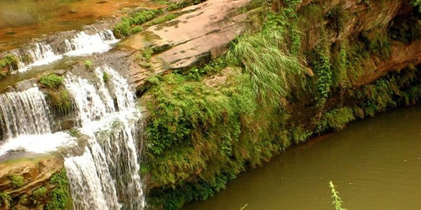 黃金峽:位于丹棱城西24千米張場(chǎng)鎮(zhèn),仁興鄉(xiāng)和王場(chǎng)鄉(xiāng)境內(nèi),峽長(zhǎng)7.5千米,兩岸壁立,對(duì)峙如門,其崖筆立陡削直插云天,形成雄偉壯觀的"一線天"。峽內(nèi)主要景點(diǎn)有:龍?zhí)讹w瀑、金峽湖、雙猩向龍?zhí)丁⑽Q滤、一線天、虹渡、望魚石、金船等。當(dāng)?shù)厝搜裕?quot;金峽有三奇,曉雨不濕衣,九月瑞雪飛,夜半聞琴聲","神隆博濟(jì)廟,喊聲一出雨就到"。"黃金天子一夜鑿?fù)S金堰"等傳說(shuō)故事更是神奇美妙。