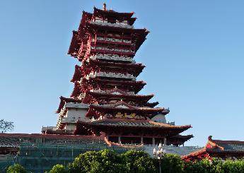 位于游仙區(qū)龜山之巔,始建于唐高宗顯慶年間(656年—661年),已有1300余年歷史,是與黃鶴樓、滕王閣、岳陽樓齊名的唐代文化名樓之一。東望富樂(山)、西接碧水(寺)、南眺南(山)塔、北連九院(科學(xué)城),踞龜山傍涪水,攬綿州之勝于無余。歷代詩人題詠越王樓詩篇多達(dá)150余篇,其中尤以詩仙李白的《上樓詩》:“危樓高百尺,手可摘星辰,不敢高聲語,恐驚天上人。”聞名天下。