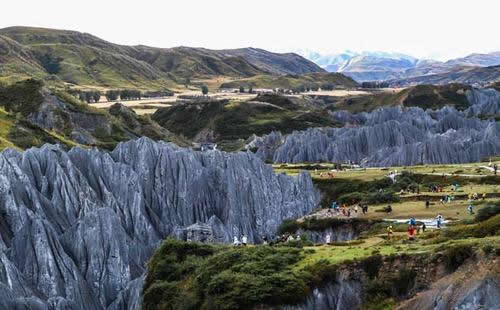 八美土石林景區(qū)在地質(zhì)成因和自然環(huán)境方面十分特殊。遠眺八美石林,群峰匯聚,萬塔林立,崢嶸起伏,重巒疊嶂,景象萬千,如同精心制作的盆景。身臨其境、深感目不暇接,令人留連往返。有的像白鹿望天,有的似猛虎下山,有的仿佛獼猴酣睡,石柱、石筍、石蘑菇、石蓮花更是千姿百態(tài)、栩栩如生,真是猶如童話迷宮。周邊還有坦蕩的草地,峻峭的雪山,迷人的藏寨與之互相映襯。