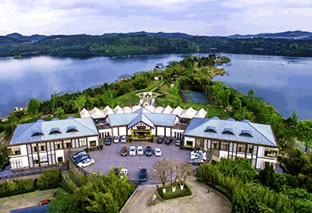 雷耀度假酒店位于綿陽市仙海旅游度假區(qū)天樞島,由綿陽嘉益集團(tuán)投資,臺灣著名公司設(shè)計的城市首席親水型湖畔度假酒店。酒店占地310多畝,一期項目擁有10棟湖畔水上別墅,共計40套湖景客房配置完善、舒適寬敞,所有房間可將碧藍(lán)遼闊的仙海湖景盡收眼底;酒店設(shè)有宴會廳、西餐廳、多功能廳、露臺餐區(qū)及12個自由組合分隔雅間可同時接待1000余人的大型婚宴及宴會,提供川菜、地方風(fēng)味、自助餐、燒烤和仙海湖生態(tài)魚宴等;酒店主樓及豪華游輪設(shè)有大、中、小型會議室5個,集會議、培訓(xùn)、展覽于一體;康體娛樂設(shè)施有網(wǎng)球場、羽毛球場、射箭場、垂釣、棋牌娛樂、KTV;酒店擁有仙海湖最大戶外婚禮場地和婚紗攝影基地,寬廣獨(dú)立臨湖大草坪可容納500人戶外草坪宴會;大型游輪碼頭擁有1艘大型游輪、3艘中型游輪和5艘各類小型豪華游輪,同時大型游輪日月潭號為您提供別具一格游輪婚禮。酒店所有客房、餐廳、會議室、戶外休憩區(qū)和大堂區(qū)域均覆蓋WF信號,客人可以免費(fèi)使用。