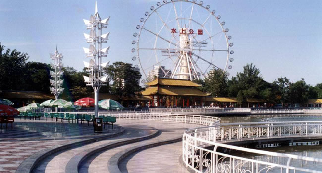 水上公園位于市區(qū)西南部,占地200公頃,園內(nèi)有三湖九島,其中水域面積89.2公頃,是天津市以水景為特色,以水上活動為