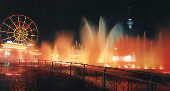 (3)、數(shù)控噴泉:隨著音樂節(jié)拍,自動變換組合各種水型,并同時噴出“火柱”、“火球”、形成“火龍”、“火海”等。