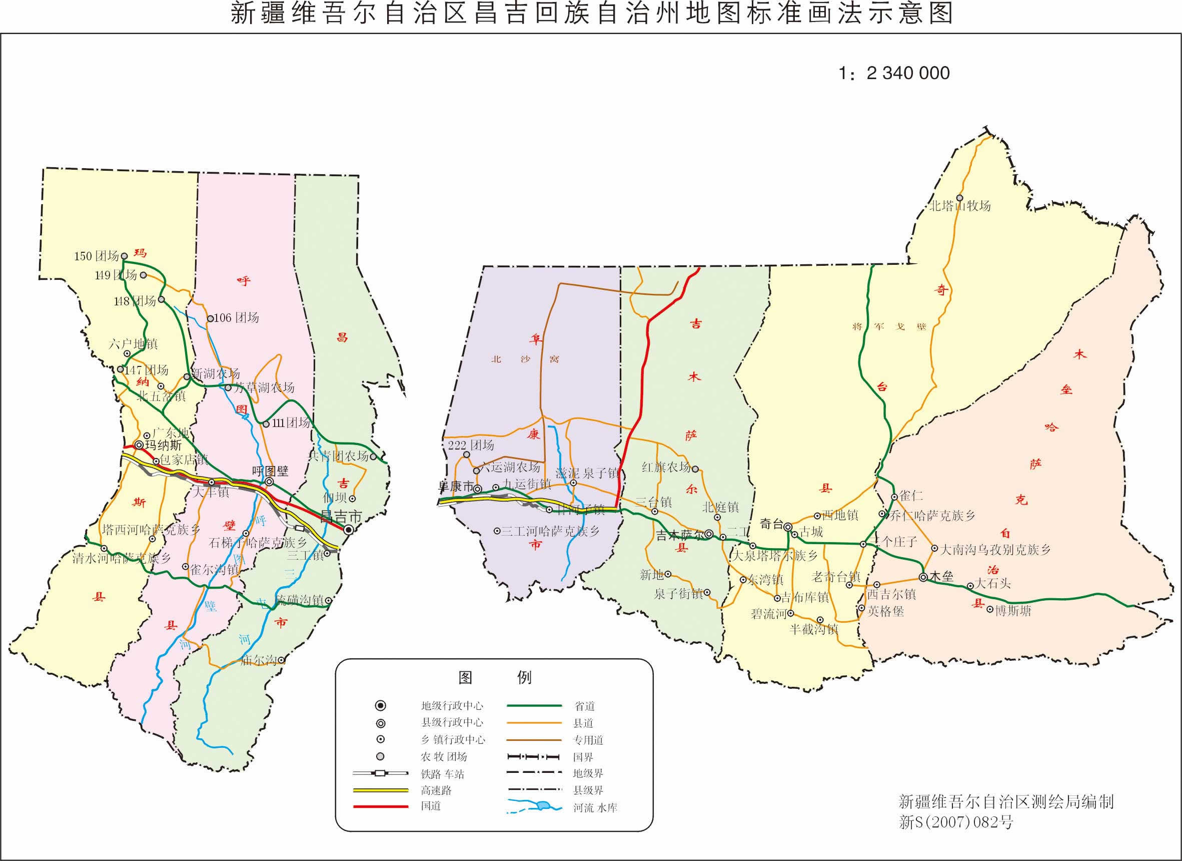 昌吉市 面積7971.03平方千米,人口40.45萬,政府駐延安北路街道,下轄6個街道、8個鎮(zhèn)、2個鄉(xiāng)