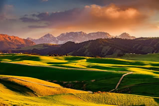江布拉克是哈薩克語,意為圣水之源。她集結(jié)了天山之靈氣,并融入諸多美麗的傳說。在這里,遠山近水相映,林海雪峰交融,綠波花海如潮,一派圣潔的自然風(fēng)光。美麗的江布拉克,以其秀美迷人,如詩如夢的花海子,明靜清幽的黑澇壩,世界之最的天山怪坡,以及阡陌縱橫的田園風(fēng)光吸引著眾多游人的目光。