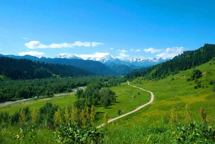 伊犁的草原風景區(qū)都是處在東西走向的河谷地帶,唯獨伊犁鞏留縣東部山區(qū)的庫爾德寧是在一條南北走向的山間闊谷,長約14公里,最寬處約1公里,谷底平均海拔1500米,庫爾德寧便是哈薩克語“橫溝”的意思。特殊的南北走向,使得庫爾德寧冬暖夏涼,四季氣候宜人,所以庫爾德寧既是伊犁著名的風景區(qū),又是旅游避暑的勝地,兼具江南山鄉(xiāng)的嫵媚清秀和草原景色的博大粗獷,吸引著越來越多的國內外游客。她的絕色天姿和超凡脫俗的自然景觀令人嘆為觀止,使人無限向往。