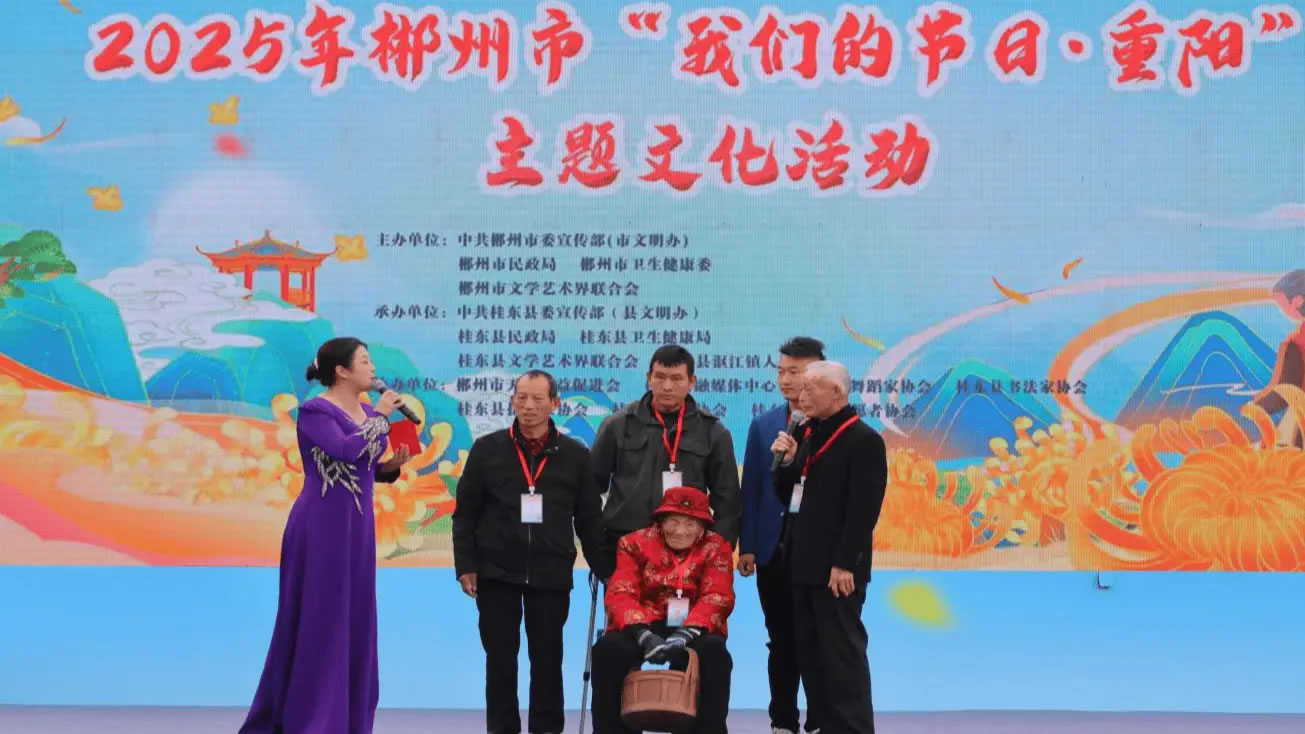 秋光正好、重陽情濃。10月28日,在“世界長壽鄉(xiāng)”湖南桂東的三臺山廣場,一場以“崇德敬老 福壽桂東”為主題的2025年郴州市“我們的節(jié)日·重陽”主題文化活動溫情上演。