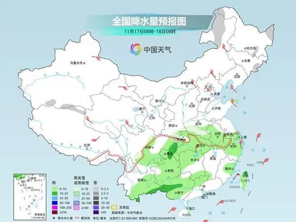 中央氣象臺預(yù)計,今天,內(nèi)蒙古東北部、黑龍江東部、吉林東部、河南西南部、陜西東南部、湖北西北部等地部分地區(qū)有小到中雪或雨夾雪,其中,陜西東南部、湖北西北部等地局地有大雪;江淮西部、江漢、江南北部和西部、西南地區(qū)東部和南部、華南北部和西部等地部分地區(qū)有小到中雨。