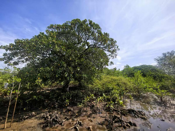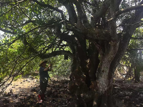 在鐵爐港紅樹林自然保護區(qū),4公頃面積孕育了500多株珍貴的古紅樹,其中包括世界瀕危物種、國家一級保護野生植物紅欖李。該保護區(qū)內(nèi)的9株原生紅欖李構(gòu)成了國內(nèi)最大的紅欖李古樹群落,也是該物種在全球范圍內(nèi)重要的天然分布地。