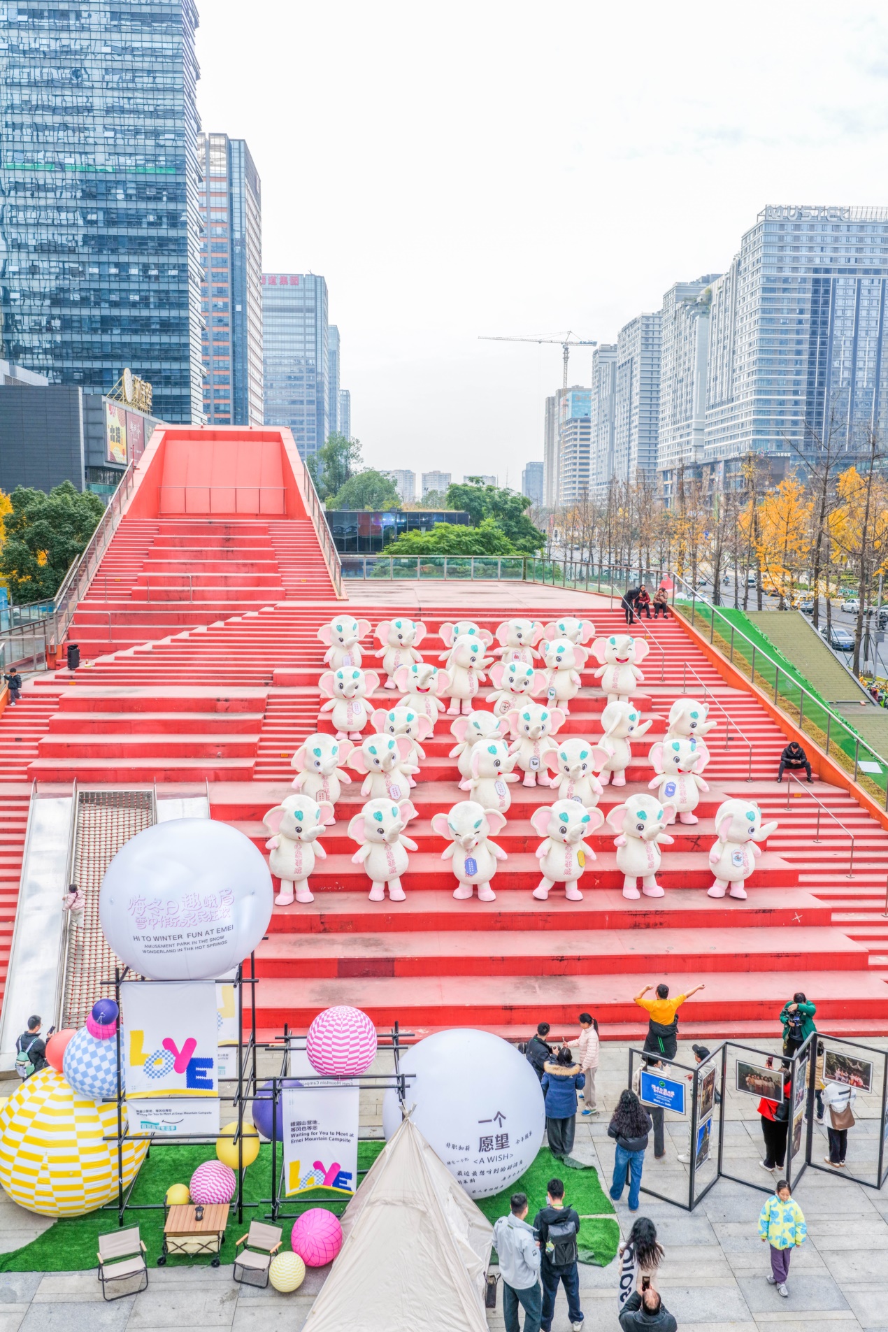 巡游現(xiàn)場熱度直接引爆全城,27只小福象沿街靈動穿梭,每一步都自帶萌系暴擊,瞬間俘獲所有市民游客的目光,將交子大道的冬日氛圍推向頂峰。可愛的身形、靈動的姿態(tài)引得孩童們歡呼雀躍,紛紛追著福象奔跑嬉戲,童真笑語灑滿整條街;成年人也難抵萌趣誘惑,紛紛駐足打卡,爭相與福象擊掌互動、親密合影,用鏡頭定格這份冬日美好,在溫馨互動中寄托自己的冬日心愿,現(xiàn)場歡聲笑語此起彼伏,熱鬧氛圍堪稱空前。成都市民李女士滿心歡喜地說道:“孩子徹底被小福象迷住了,吵著鬧著非要立刻去峨眉山看雪耍樂,這份冬日期待直接拉滿!”市民紛紛表示被小福象徹底圈粉,峨眉山冬日之旅已成必打卡清單TOP1。