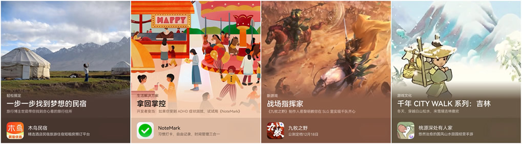 此時北極圈內正處極光季,如果想去北極圈追光,可以在AppGallery查看“終極旅行:追極光”專題,藍冰,極光,限定美景這個冬季一次滿足!此外,AppGallery還有更多精品專題,如熱播影音展覽、拍攝美化指南、旅游出行攻略、生活實用妙招、精品游戲介紹等。要是刷到感興趣的內容,只需在Story頁面底部點擊“分享”按鈕,就能一鍵轉發(fā)給好友,共享精彩內容和APP。在“探索”頁面,還有很多如一步一步找到夢想的民宿、拿回掌控、戰(zhàn)場指揮家、千年CITY WALK系列:吉林等專題,總能找到合你心意的內容。