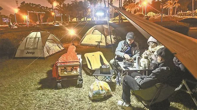 跨年夜的同安環(huán)東浪漫線,露營(yíng)熱潮伴著夜色升溫。