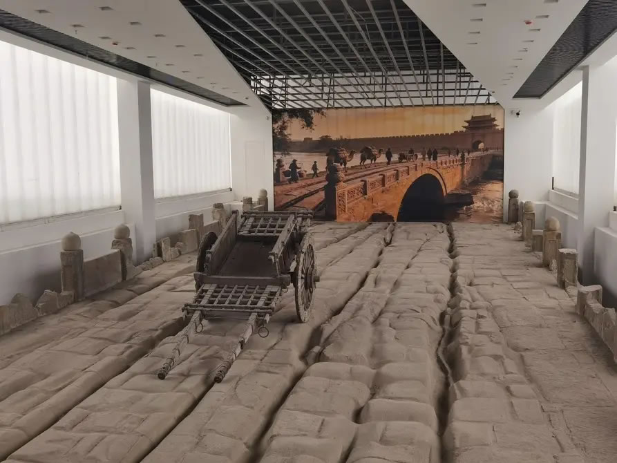 呈現(xiàn)在人們眼前的鎮(zhèn)遠(yuǎn)橋?yàn)辄S砂巖條石砌筑的單孔拱橋,造型古樸,結(jié)構(gòu)穩(wěn)固。橋體殘長22米,寬17米,拱高3.5米,保存有橋拱、橋身、雁翅駁岸等部分。尤為珍貴的是,橋面清晰保留有4道深淺不一的車轍痕跡,其中最深處達(dá)10厘米,生動(dòng)見證了明清時(shí)期太原城商旅絡(luò)繹、車馬穿行的繁盛景象,是晉商活動(dòng)與北方商貿(mào)往來的一份無聲檔案。